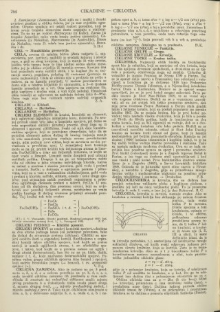 CIKLOIDA, krivulja u ravnini, nastaje ovako: Ako se kružnica u ravnini kotrlja bez sklizanja po nekom čvrstom pravcu, tada svaka točka P te ravnine, čvrsto spojena s tom kružnicom, opisuje cikloidu, i to običnu, prikraćenu odnosno produljenu prema tome, da li točka P leži na kružnici, u kružnici ili izvan nje (I, II, III u slici). Iz same definicije izlazi, da je ta krivulja periodska, t. j. sastavljena od neizmjerno mnogo sukladnih dijelova, od kojih svaki odgovara jednom potpunom okretu kružnice, koja se kotrlja. Zato je to transcendentna krivulja. Ako su x i y koordinate točke P u koordinatnom sustavu naznačenom u slici, tada parametričke jednadžbe cikloide glase: